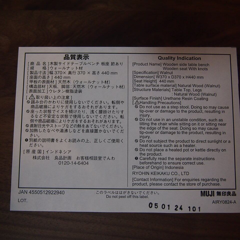 MUJI 無印良品 木製サイドテーブルベンチ 板座 節あり