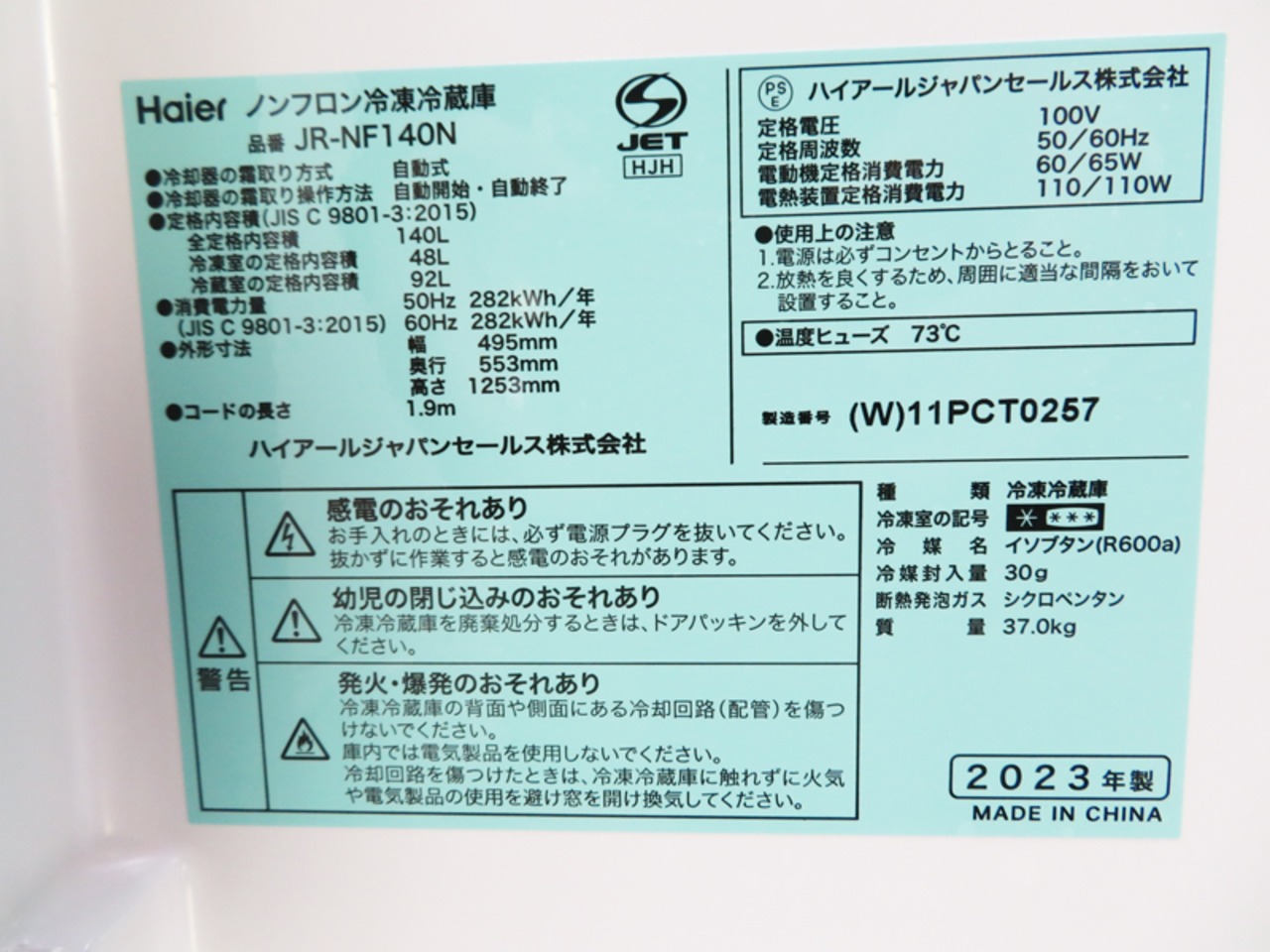 JR-NF140N 2023年製
