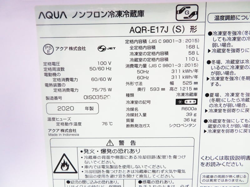 AQR-E17J 2020年製