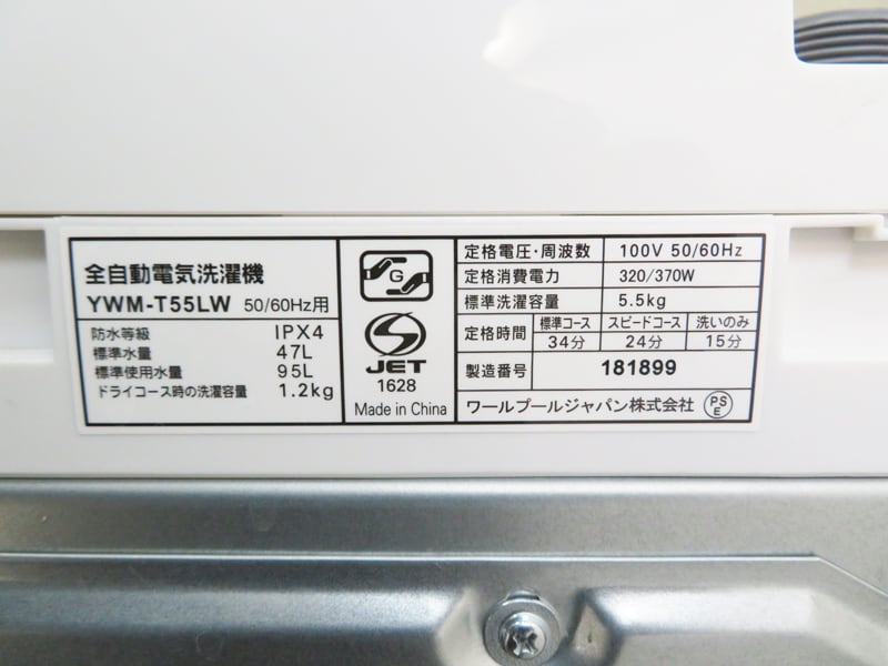 【徹底清掃済】 ヤマダ 5.5kg 洗濯機 YWM-T55LW 2024年製 AS06