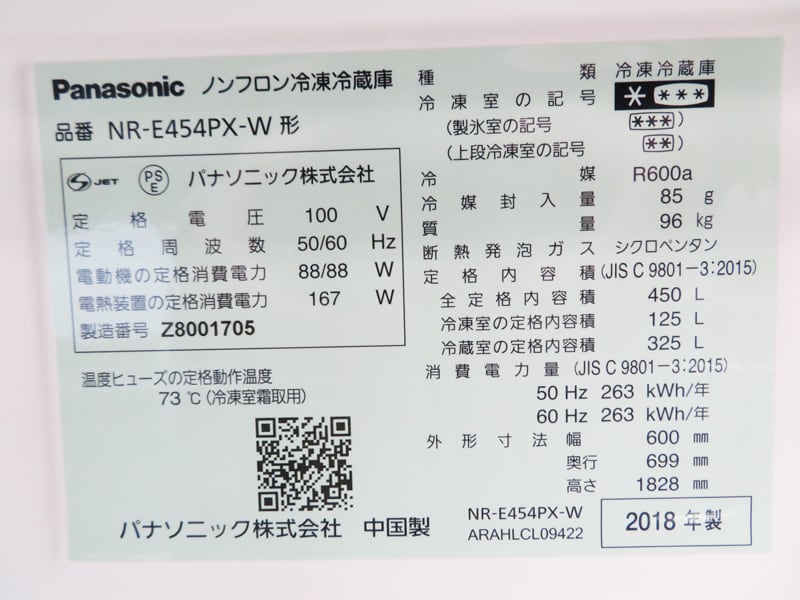 NR-E454PX (450L・右開き) 5ドア