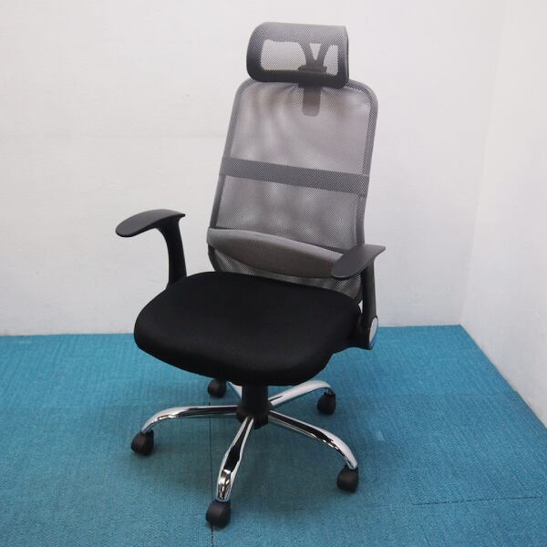 通気性の良いメッシュ素材と、長時間の作業でも疲れにくいヘッドレスト・アームレストを備えた機能的なオフィスチェアです。