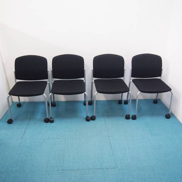 ジョインテックス 会議イス CM-6C ブラック 肘無キャスタ付 4脚セット
